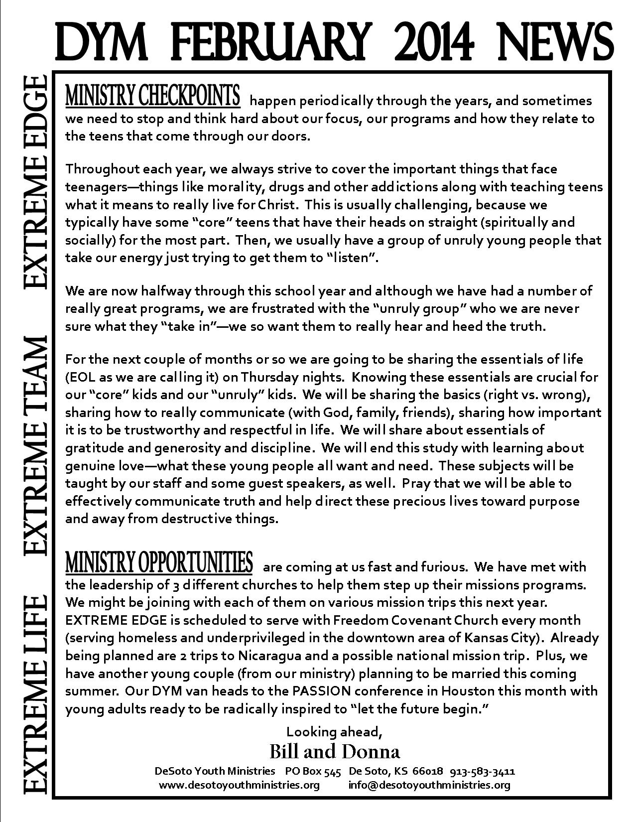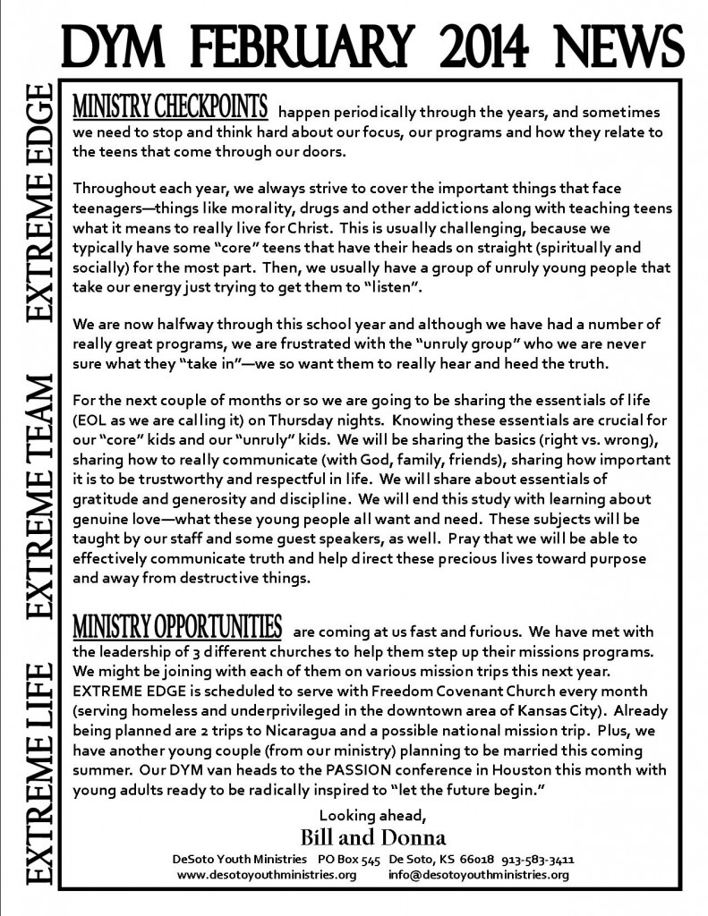 DYM February 2014 Newsletter