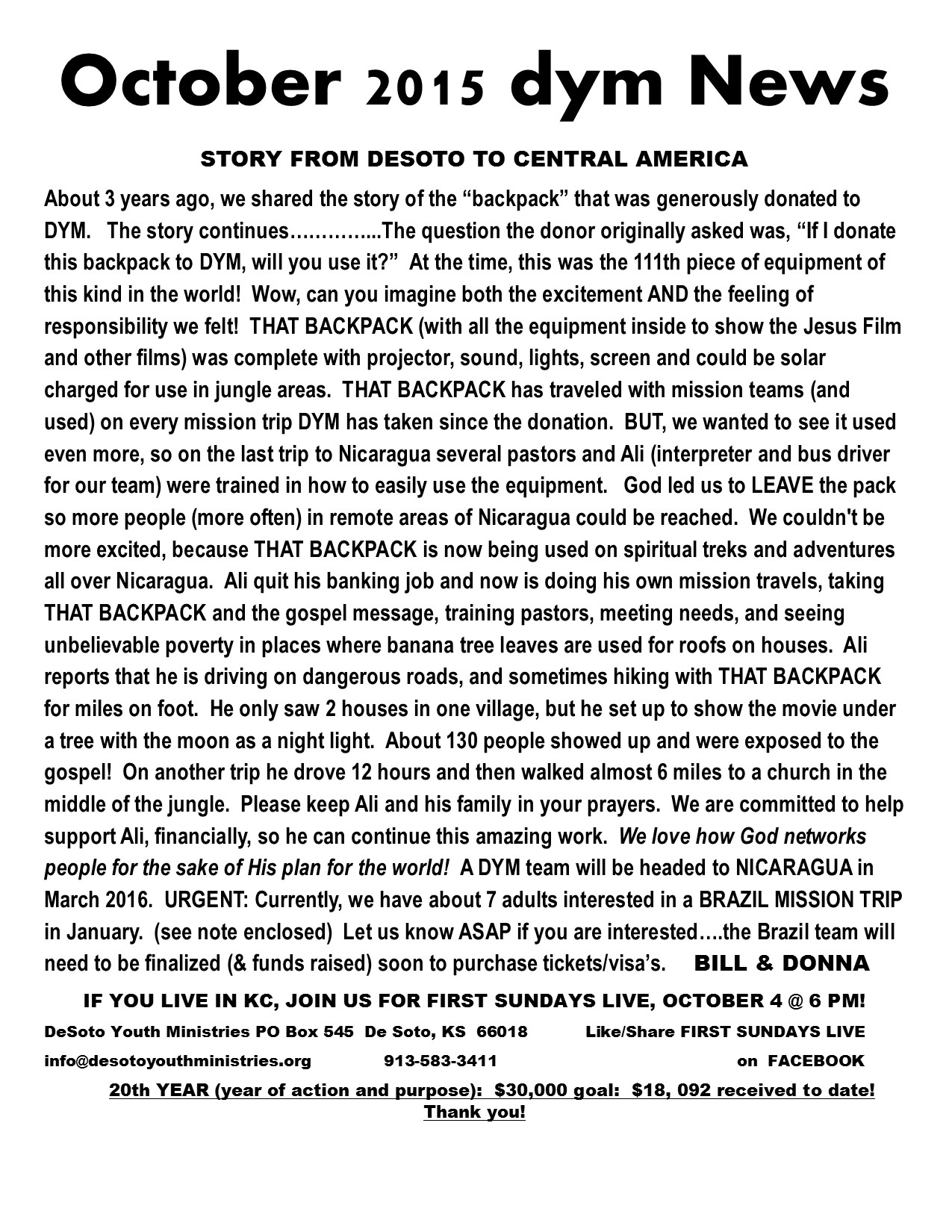 OCTOBER 2015 DYM NEWSLETTER